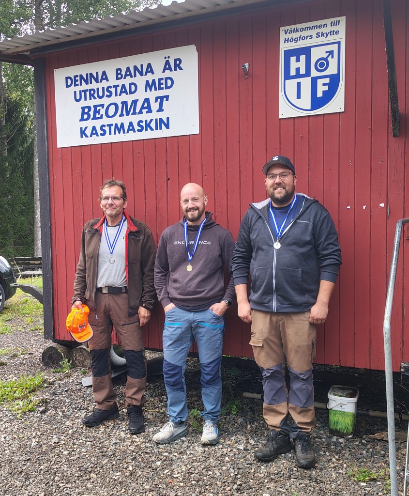 Lördag den 30 augusti hölls klubbmästerskap i lerduveskytte 2025. 11 skyttar ställde upp, fördelade på 3 skjutlag. Två lag med 4 skyttar i varje och ett lag med 3 skyttar. Vi hade tur med vädret också, då det var uppehåll trots att SMHI hotat med regn.